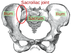 So what is the SI joint? This picture shows the connection of the sacrum to the ilium therefore giving you a joint called the sacroiliac, or commonly referred to as the SI.